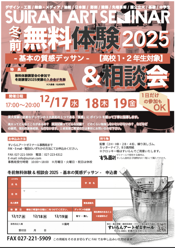 群馬県/フランス美大留学予備校・芸大受験・美大受験・子どもから社会人の為の美術学校・画廊/すいらん